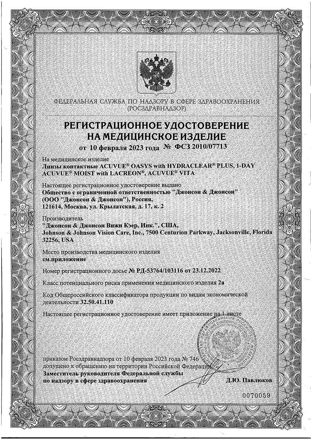 Купить средства коррекции Acuvue Oasys with Hydraclear Plus можно в интернет-магазине или салоне оптики. Предварительно нужно пройти обследование у офтальмолога и получить рецепт с требуемыми диоптриями, кривизной и пр.