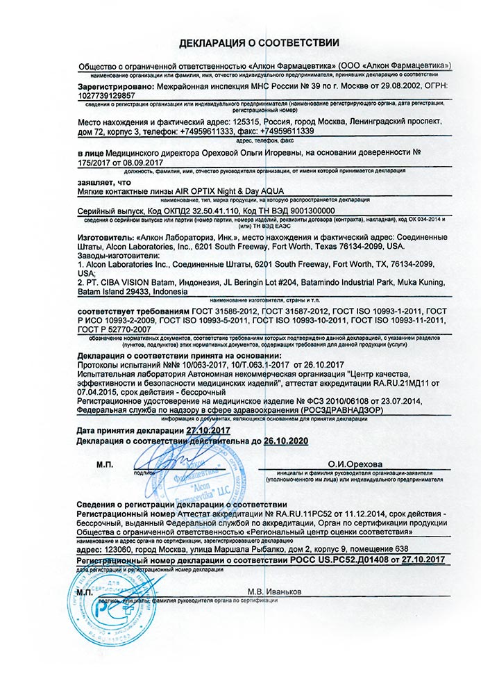- высокая смачиваемость: во всех контактных линзах семейства AIR OPTIX® используется технология плазменной обработки поверхности, которая обеспечивает cоздание защитного увлажняющего слоя. Это обеспечивает непрерывный комфорт в течение месяца ношения.
