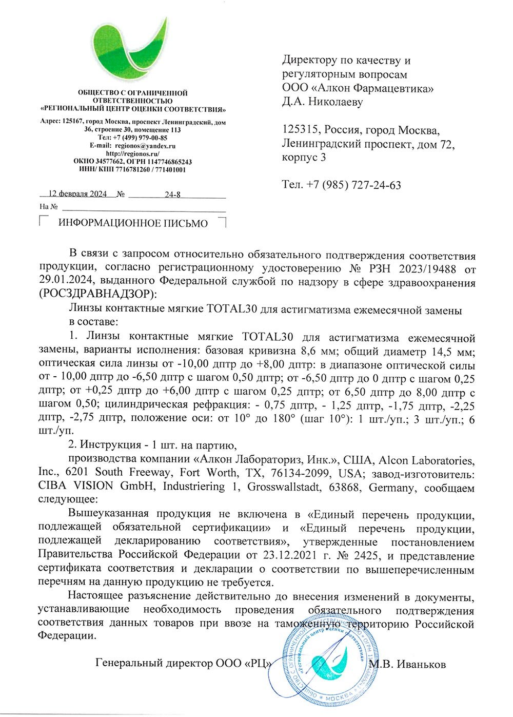 Описание "Alcon TOTAL30 for Astigmatism 3 шт"