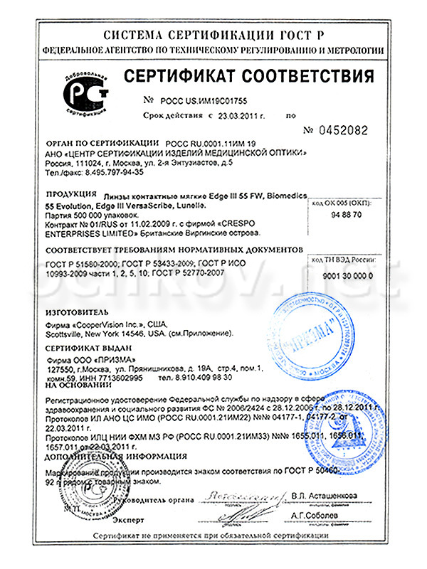 Напоминаем, что подбор контактных линз осуществляется под наблюдением врача-офтальмолога.
