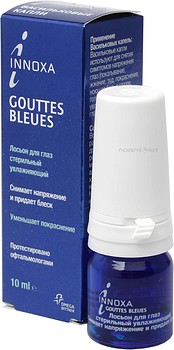 Голубые капли Innoxa снимают усталость глаз, создают повышенный комфорт ношения контактных линз, обеспечивают меньшую заметность линз на глазах, придают дополнительную естественность взгляда.