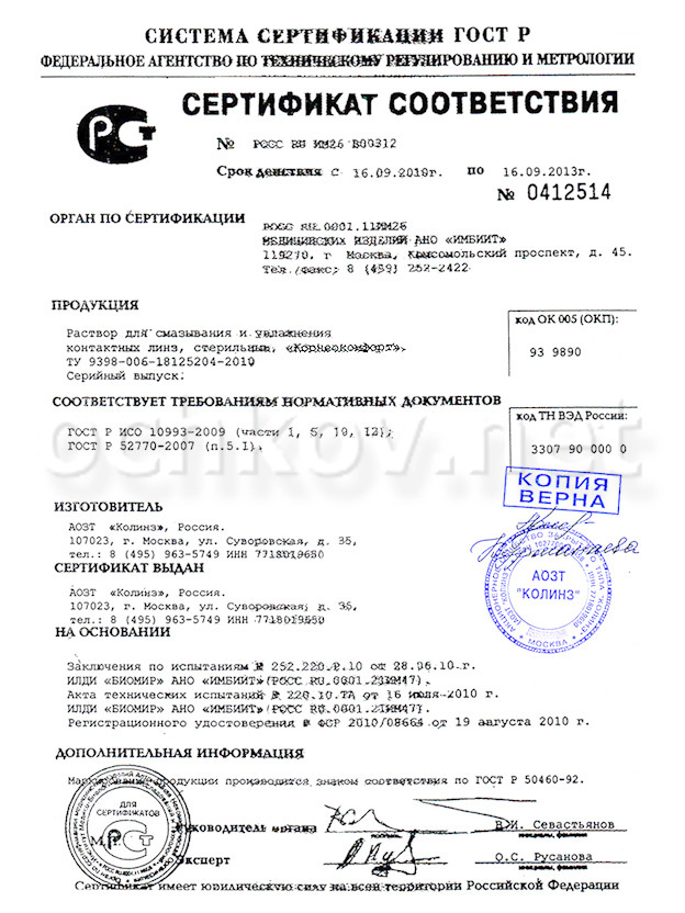Раствор «Корнеокомфорт» можно применять при синдроме "сухого глаза", неприятных ощущениях (жжение, высокая утомляемость глаз), а также в случаях, когда линзы начинают подсыхать и вы ощущаете дискомфорт. Клинические испытания показали, что лечебное действие раствора «Корнеокомфорт» - это результат редкого сочетания высокой гидрофильности и полной биосовместимости.